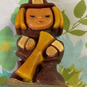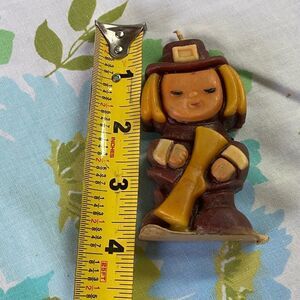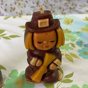 This pair of vintage pilgrim candles are in fair to good vintage condition. The candles have some nicks and color fading. Please review photos for measurements and overall condition.