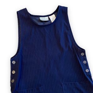Vintage Pinafore Modest Erika Studios Navy Blue Sleeveless Maxi Dress