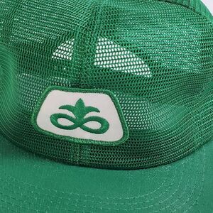 Authentic vintage Pioneer seed corn advertising hat featuring a bold green corduroy body and iconic white embroidered patch with the double-leaf infinity logo. Classic snapback closure with flat bill. A collector’s favorite among agricultural and seed company enthusiasts.