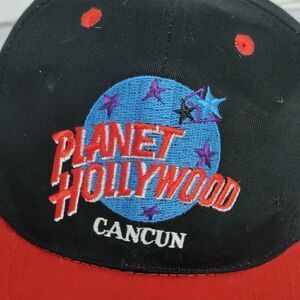 Vintage Planet Hollywood snapback hat from Cancun Mexico. Red and black with Planet Hollywood design embroidered on front. In very good condition, no major flaws. See photos