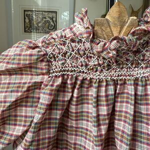 Vintage Polly Flinders Plaid Smocked Long Sleeve Dress 3T