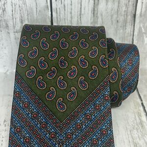Vintage Polo Ralph Lauren Men's Necktie Paisley Geometric Print Green Blue