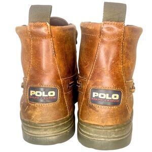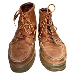 Vintage Polo Sport Ranger Lug Sole Chukka Boots 9 Moc Toe Cognac Leather Lace Up