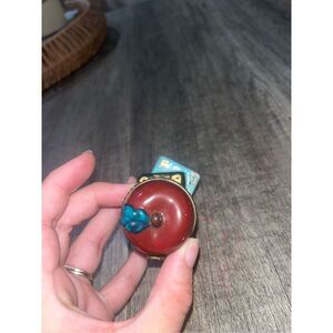 Vintage Porcelain Mini Hinged Trinket Box Apple On Books Teacher 2.25”