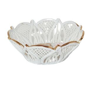 Vintage Porcelain Wicker Style Trinket Basket Floral With Gold Accent 2" x 4"