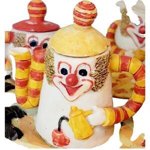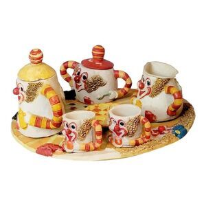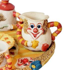 Vintage Pottery Miniature Tea Set Alice In Wonderland Clowns Playing Cards READ.