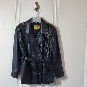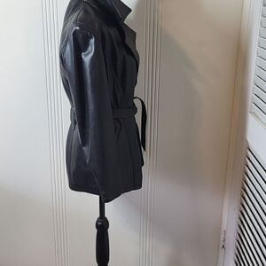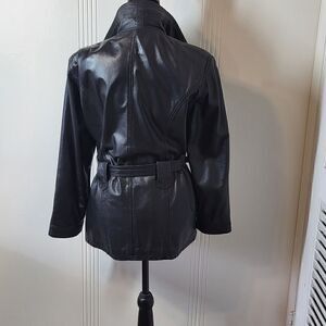 Vintage Prima Donna women's black leather jacket. Size 38 / Medium. Made in Italy. Buttons in the front with two pockets. One small infraction that is covered up by the belt...as shown in the last photo.