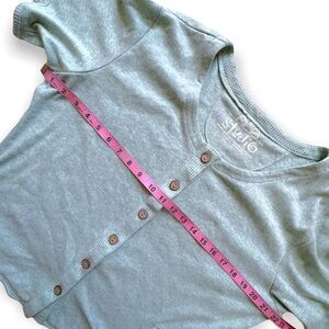 Cardigan has button down closure