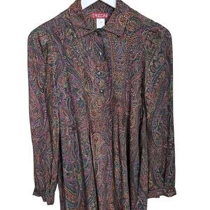 Vintage Puccini Paisley Dress Womens Small Long Sleeve Button Front Prairie