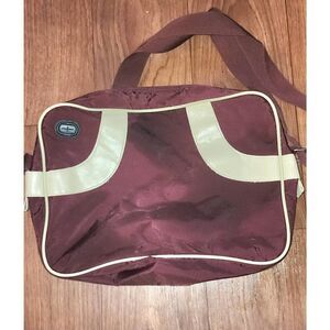 vintage over the shoulder bag, with long adjustable strap, zip to close and logo to zip tags, also pocket with zip to the inside, a very sturdy and handy bag, in great condition, size 15" inches long, 11" nches tall