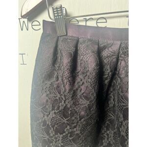 Vintage Purple Satin Mini Skirt Black Floral Lacing XSmall Y2K. Hh