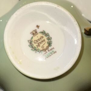 Vintage Queen Anne Fine Bone China Teacup, Saucer, & Tea Plate Trio Pastel green