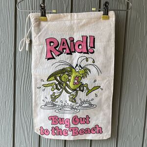 Vintage RAID! Bug Out to the Beach Canvas Drawstring Bag 80s Promo 18"x11"