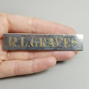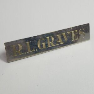 Vintage R.L. Graves Engrave Rectangle Name Plate Brooch, Silver Tone Lapel Pin