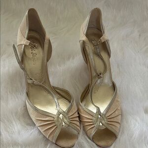 Step out in style with these elegant beige peep-toe heels. Perfect for any occasion, these shoes offer both comfort and sophistication.