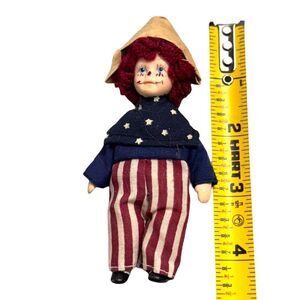 Vintage Rag Doll Red Curly Hair & Striped Pants Patriotic Dunce Cap Hat Mini 4"