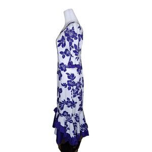 Vintage Hawaiian Ruffle Midi Sleeve Hawaiian Muumuu Dress Womens Size S Purple