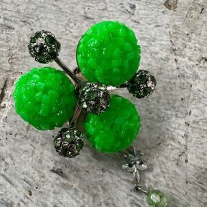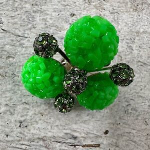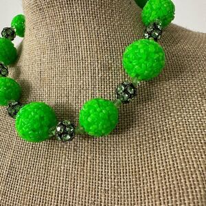 Vintage Rare Vendome Glowing Green Popcorn Bead Necklace And Earrings Set 1960s