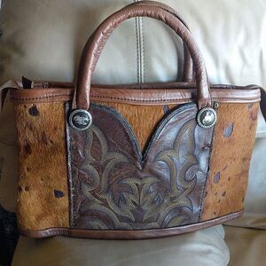 Vintage Recycle Cowboy Boot Purse- Hair on hide🐎