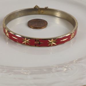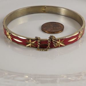 Vintage Red Enamel Diamond Star Cut Bracelet Chain