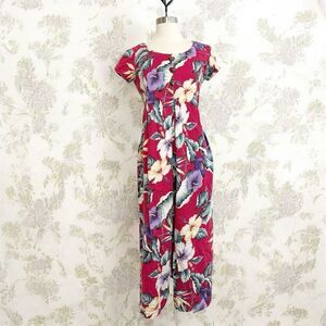 Vintage Red Floral Jumpsuit Cropped Blouse Wide Leg Medium