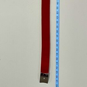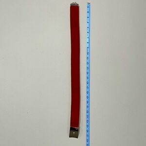 The belt is 28” long, stretches 3”, and has a clip closure.