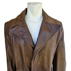 Vintage Reed Sportswear Leather Car Coat Men’s 42 Brown Button Overcoat Jacket