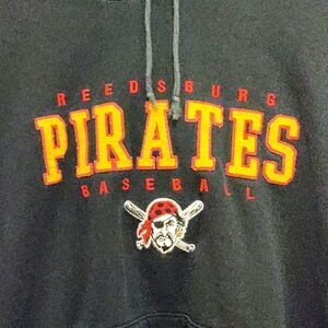 Vintage black Reedsburg Pirates amateur baseball league hoodie. All embroidered. Great look, very well constructed hoodie by Impact Sports. No major flaws, see photos for details. Width 27" Length 27"