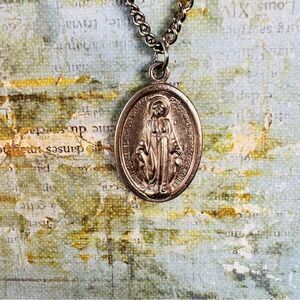 This religious silver chain is approximately 28 inches Metal Lead Free