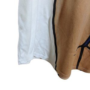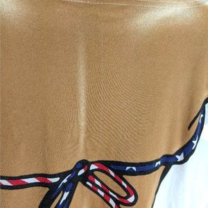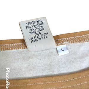 Size: Large, (measurements appx. pit to pit - 26.75", length - 29.5" from the corner of the neckline down. It swoops, so it is longer in the center)