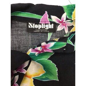 The Vintage/Retro Stoplight of California Crop Shirt is a tropical themed blouse top with shoulder pads from the 1980s, made of polyester material. This original shirt has a casual look and is perfect for any occasions. With a size medium, this retro piece is a unique addition to any vintage clothing collection, showcasing the brand's unique style and design. Whether worn as a statement piece or as part of a retro-inspired outfit, this shirt is sure to turn heads and showcase a sense of nostalgia for the 1980s era. 💚