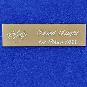 ~Inside there is a gold tone metal strip that says "Third flight 1st place 1988"