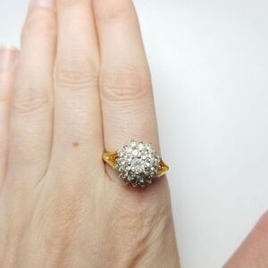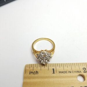 Vintage Rhinestone Cluster Ring, Gold Tone Band, Sparkly Estate