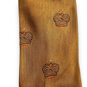 This amazing vintage tie is in excellent condition. It’s made of textured brown fabric with little crowns embroidered on it. The tie is thinner than a normal tie as well.