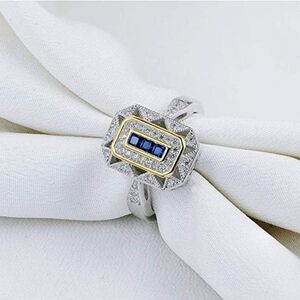 Vintage Rings for Women Gemstone Ring 925 Sterling Silver Blue Sapphire Princess