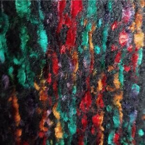 jewel toned, eyelash yarn knit sweater. zip front. pit to pit 22" length 30"