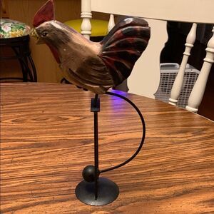 Enhance your space with this charming wooden bird balance sculpture. Featuring rich red and brown colors, this piece adds a touch of nature to any room. Perfect for bird lovers and home decor enthusiasts. Smoke free & Pet free home. See ALL photos for complete description/details.