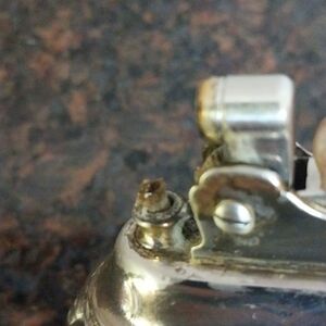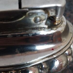This table lighter made by Ronson fro 1949-1954 were meant to adorn a dinner table. Its silver plating is in excellent vintage condition and will polish even more if you want. The Ronson name and patent numbers are clearly shown. It measures about 2" x 3".