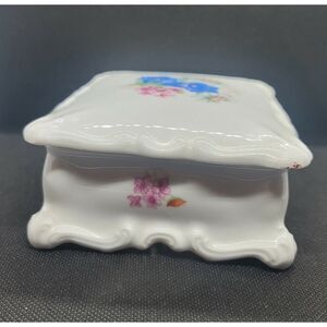 The Vintage Rosenthal SELB Germany Rectangular Floral Jewelry Trinket Treasure Box is a small ceramic and porcelain trinket box featuring a glossy finish. Made in Germany by the renowned brand Rosenthal, this collectible item showcases a floral pattern in multicolor and a rectangular shape. Ideal for storing jewelry or other small treasures, this decorative piece adds a touch of elegance and charm to any space with its flower subject and intricate design.
