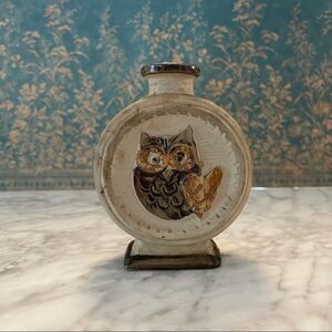 This little vintage vase is in excellent condition. It has a textured glazed owl on the front and back. It isn’t marked, but I believe it could be Japanese. It is approximately 4” tall and 3” wide.