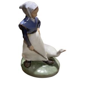 Vintage Royal Copenhagen Girl with Goose w/ Artist Monogram Porcelain Figurine