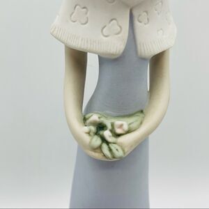 This amazing vintage figurine is in excellent condition. There are no chips or cracks. The figurine is stretched tall and she’s holding flowers. There is a garland of flowers around the bottom of her dress. I believe it’s hand painted. It is marked on the bottom. It’s approximately. 12” tall.