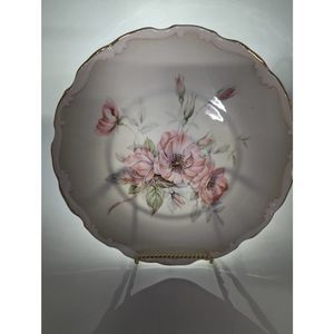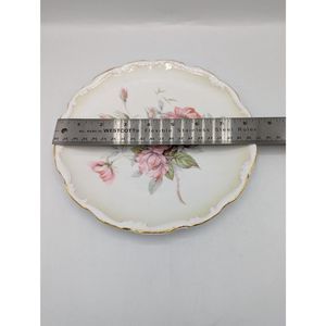 Beautiful ruffled edge gold trim vintage dessert plate with pink peony flower blossoms