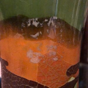This vase is in excellent pre-owned condition. There are a couple spots where there is some crusty stuff that won't come off, (see pics), but it doesn’t really take away from the beauty of the vase. It is very tall and would be a great addition to anyone’s collection! The green Earth Wrap is my favorite! It is approximately 14" tall.