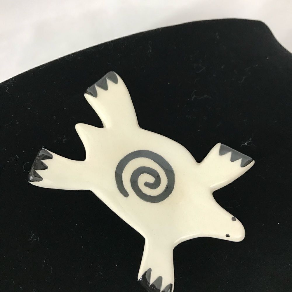 Vintage Hand painted ceramic pin signed by San Francisco artist Candace Loheed