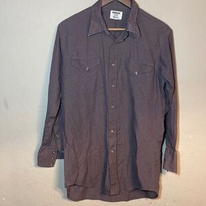Men’s longsleeve button down shirt. No size label attached but estimate it is a medium or large. Brown/navy blue checkered color make it a great vintage shirt in an interesting, rich color.