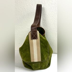 Vintage Ruehl No. 925 Green Suede and Brown Leather Tote