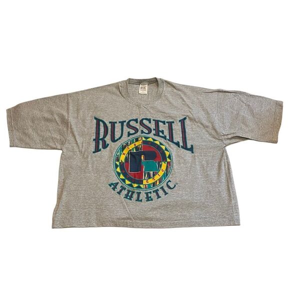 Vintage Russel Athletic Cropped T-Shirt Grey Men’s Large