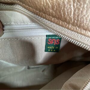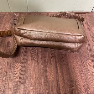 Vintage SAS Metallic Bronze Brown LEATHER CROSSBODY Croc Trim Shoulder Bag Purse
