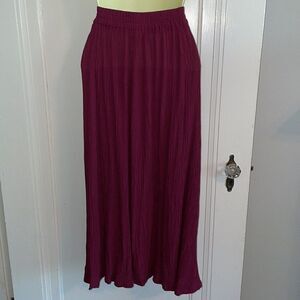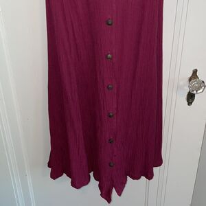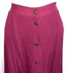 Vintage Sag Harbor plum purple rayon crinkle cloth midi skirt/buttons up front